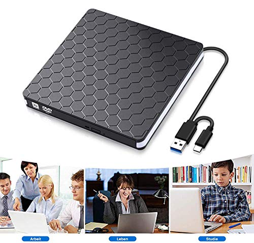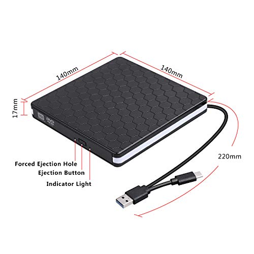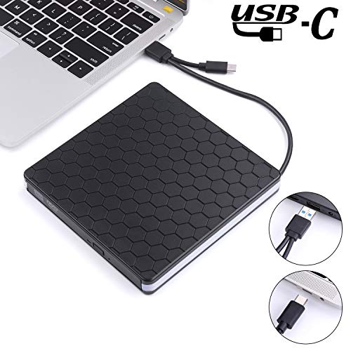 Masroo - External DVD Drive, Amicool USB 3.0 Type-C CD DVD +/-RW Optical Drive USB C Burner Slim CD/DVD ROM Rewriter Writer Reader Portable for PC Laptop Desktop MacBook Mac Windows 7/8.1/10 Linux OS Apple