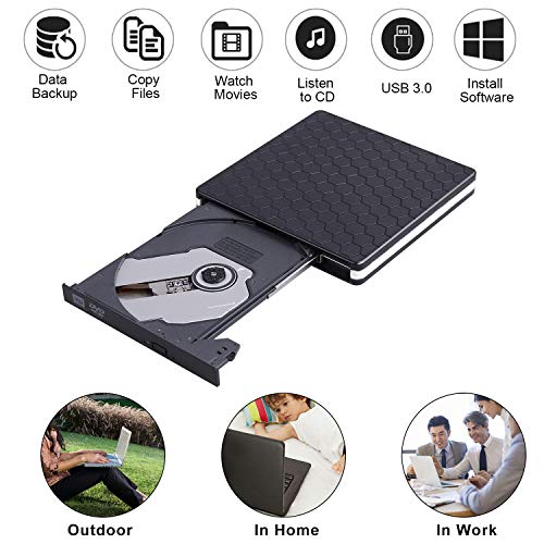 - 【High Speed USB DVD Drive 3.0】CD rom drive adopted advanced burning technology, supported DVD+R, DVD-R, CD-ROM, DVD-ROM, CD-R, CD-RW. Max DVD read speed 8X; Max CD read speed 24X and max CD burn speed 8X. Our dvd drive external is compatible with USB3.0 and backwards compatible with USB2.0 USB1.0, bringing you faster data transmission speed (max 5Gbps), plays music and movies with no lag or distortion.