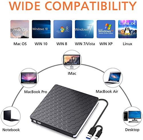 - 【External DVD Drive with Wide Compatibility】 External cd/dvd drive for laptop PC Desktop Linux OS Apple Mac Macbook Pro. CD burner compatible with Windows XP/Vista/7/8.1/10, Linux, all versions of MAC OS. For the desktops, this usb cd drive must be connected to usb port on motherboard.