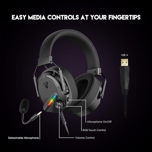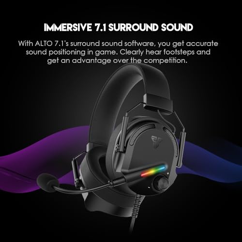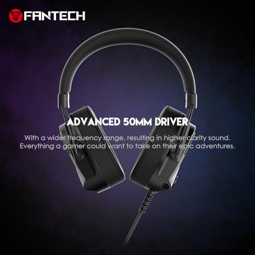 Fantech - سماعة رأس التو للألعاب 7.1 GH26 بإضاءة ار جي بي ومشغلات 50 ملم موديل HG26-BK من فاتيك، أسود