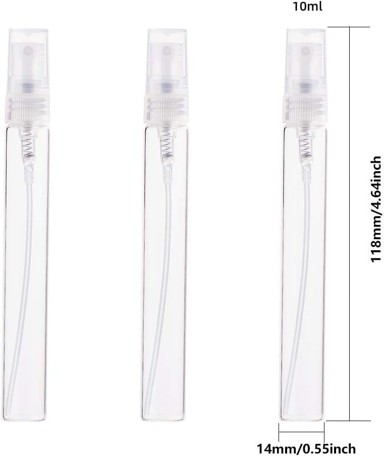 - 【محتويات العبوة】تتضمن 10 قطع من زجاجات الرش الفارغة بسعة 10 مل، يبلغ ارتفاع الزجاجة 118 ملم وقطرها 14 ملم.