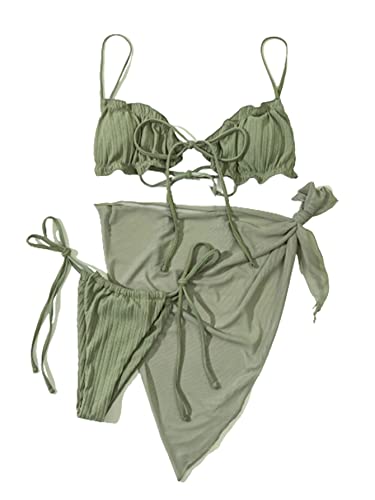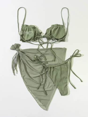 N\D - fashion mania Women's Wrap Triangle Bikini Bathing Suits with Mesh Beach Skirt 3 Piece Swimsuits