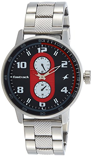 Fastrack - ساعة بمينا رمادي وسوار من الستانلس ستيل، موديل 3159SM01, فضي، انالوج، للرجال