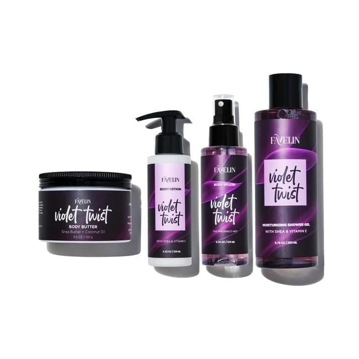 Favelin - جل استحمام فيوليت تويست من فافلين، زبدة الشيا المغذية وفيتامين اي، مناسب لجميع أنواع البشرة، سعة 200 مل
