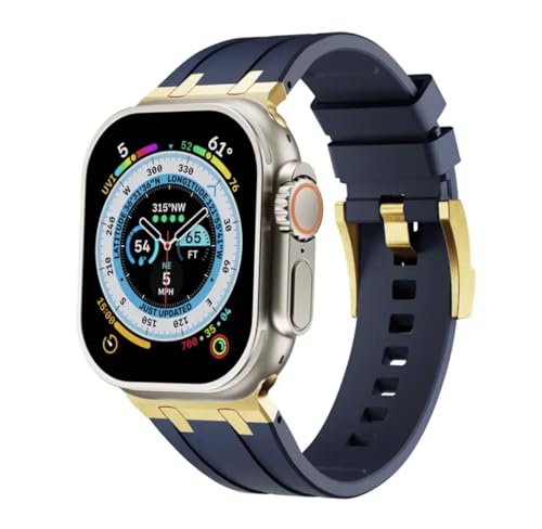 فكرة - Fekra Liquid Silicone Rubber Bands Compatible with Apple Watch Series Ultra 2 | 9 | 8 Ultra | 8 | 7 | 6 | 5 49/45/44/42 mm, Luxury Rubber Strap with Stainless Steel Adapter