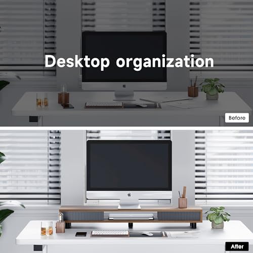 - 【تحسين المساحة】: جرب تنظيم المكتب بدون مجهود مع حامل الشاشة الخاص بنا، ومساحة تخزين من طبقتين، وحامل شاشة بطول 42.5 انش، و3 مساحات تخزين عالية السعة، ودرج منزلق مريح، وفتحات إدارة الكابلات. قم بتبسيط مساحة عملك واجعل عملك سهلاً.