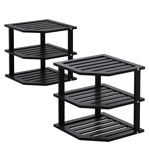 Fibogollo - 3 Tier Bamboo Corner Shelf(2 pack),Dish Drying Rack,Plate Organizer,Kitchen Spice Rack for Countertop and Cabinet,Pantry Organization and Storage(Black)