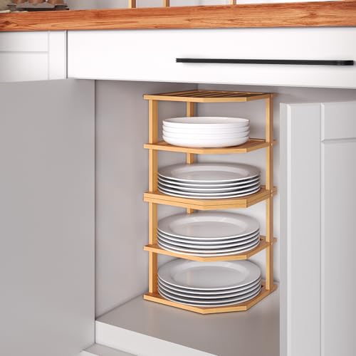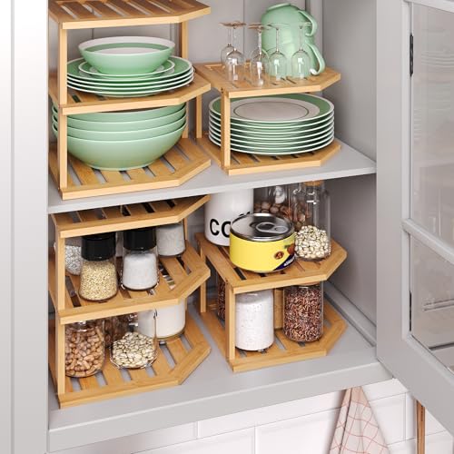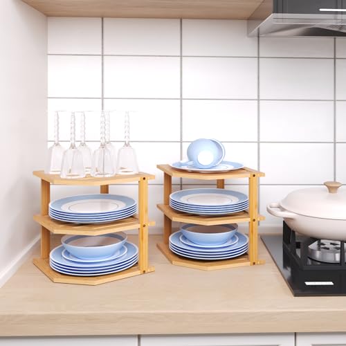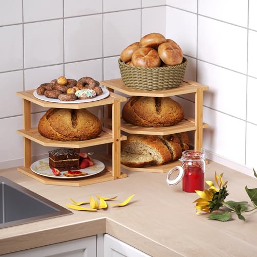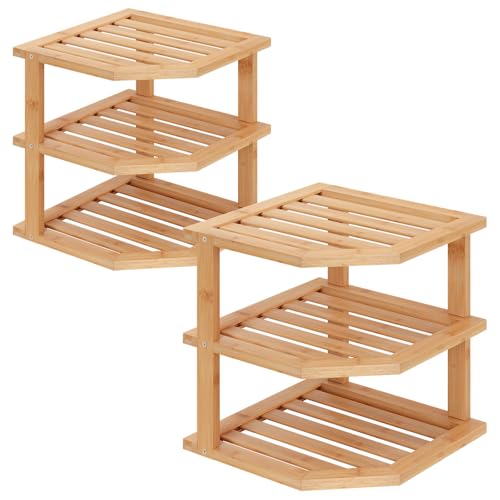 Fibogollo - رف مطبخ من البامبو بثلاثة أرفف، رف زاوية، خزانة تنظيم المطبخ، سطح عمل موفر للمساحة، سطح عمل قائم، رف زاوية للتوابل من فيبوجولو (طبيعي)