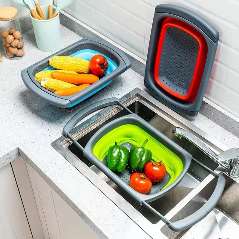 Generic - Flexible Silicone Strainer - Large Rectangular Design for Rinsing Fruits, Veggies, and Draining Kitchen Utensils, Compact and Space-Efficient Kitchen Tool