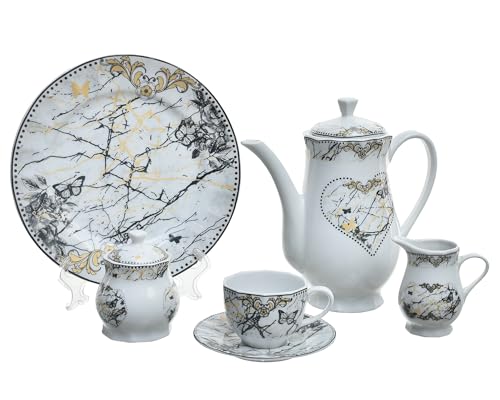 - طقم تقديم شاي وحلويات أنيق مصنوع من البورسلين عالي الجودة.