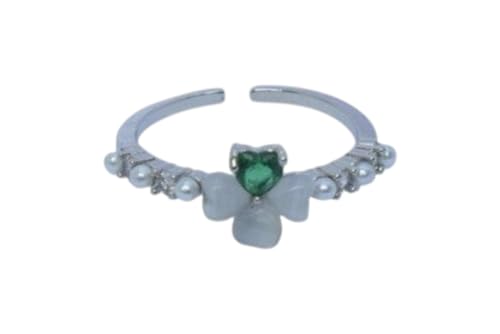 Generic - Floral Gemestone Design Stainless Steel Open Band Ring - Silver