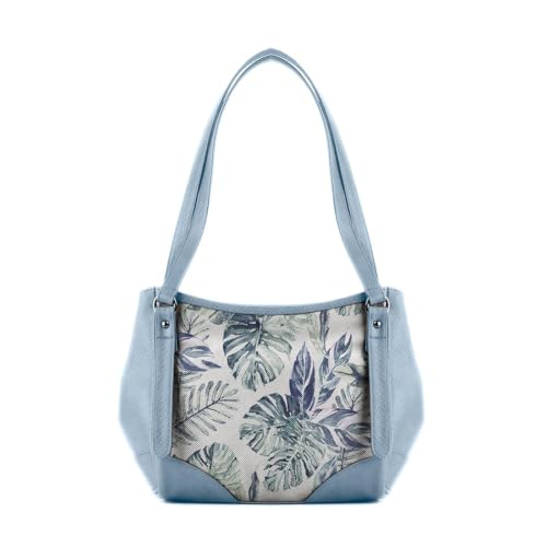 Generic - شنطة يد كبيرة توت من الجلد بطبعة زهور، لون ازرق مع تصميم استوائي، نمط الوان مائية