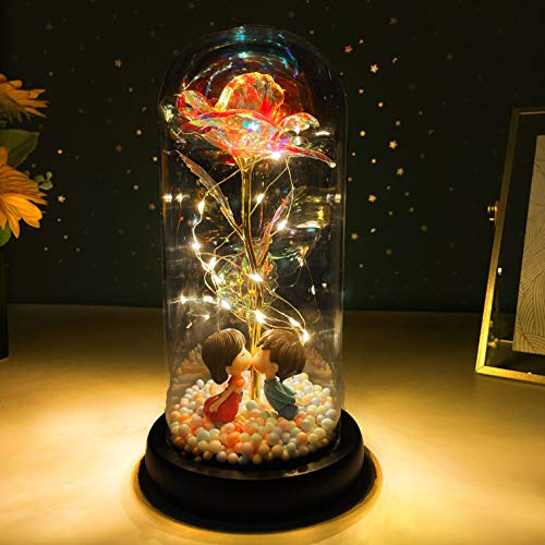 - Color-Changing Infinity Design: This unique rose features iridescent, crystal-style petals that slowly transition through a rainbow of colors. Encased in a clear glass dome, it's a mesmerizing and magical gift that symbolizes infinite and ever-changing beauty.