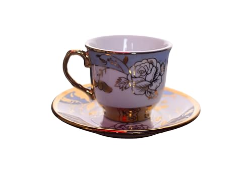 Generic - طقم أكواب وصحون بطبعة زهور، 12 قطعة،لون أزرق