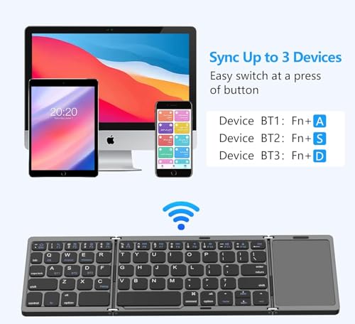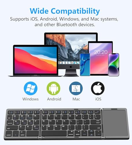 - Foldable Design: Foldable keyboard has a 3 folded design, with a strong folding part and a magnetic closure after folding