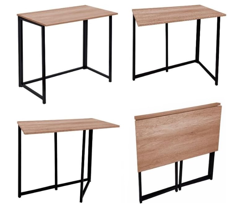 - طاولة قابلة للطي بتشطيب مسحوق أسود، لون بيج، مقاس 90×50×74 سم