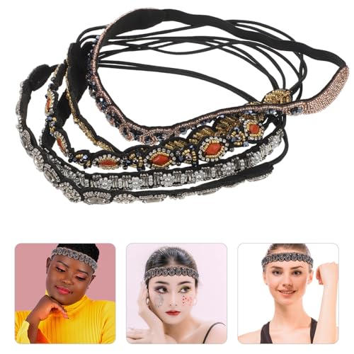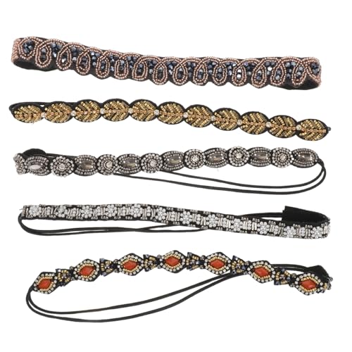 FOMIYES - FOMIYES 5pcs Beaded Elastic Headband: Rhinestone Accessories Hairbands - Sparkly Party Headwear - Fake Pearl Beaded Stretch Headband For Ladies & Girls