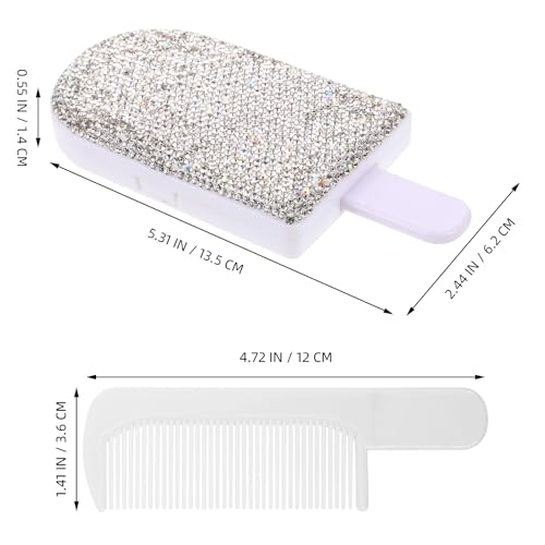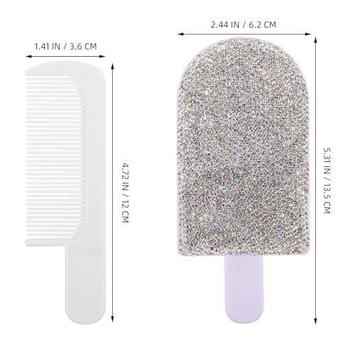 FOMIYES - FOMIYES Rhinestone Folding Makeup Mirror: Cute Handheld Pocket Mirror Ice Lollipop Shaped - Portable Compact With Comb For Purse Pocket