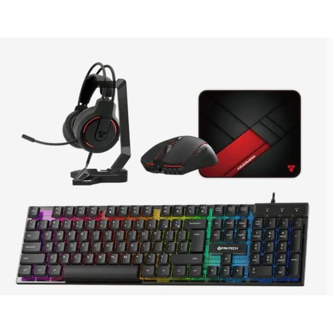 Generic - FOR FANTECH P51 Gaming Combo Kit, Keyboard, Mouse, Mouse Pad, Headset with Stand, Black