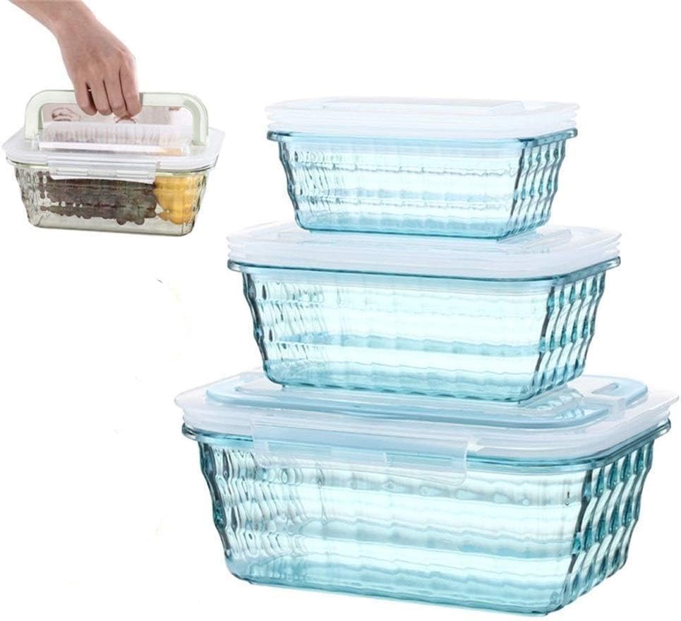 H-Home - Fridge Container Set of 3 with Lids and Handles BPA Free Airtight Plastic Food Storage Containers - Leakproof Kitchen Storage Containers Set (Grey)
