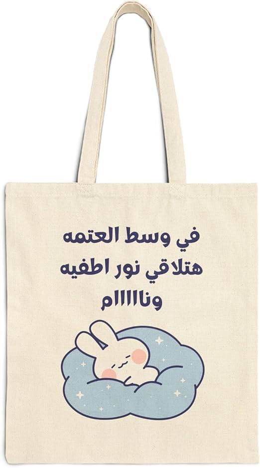 Generic - توتي باج - شنطة قماش بيج بسحاب أرنب كيوت كسلان في وسط العتمه هتلاقي نور اطفيه ونام شنطة قماش مضحكة للدروس والمدرسة Funny Cute Lazy Bunny Tote Bag For Study With Zipper 7