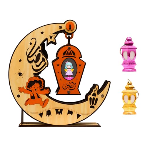 LC - FUNONY Ramadan Offers - Ramadan Decor Stand Crescent Ramadan Lantern Wooden Large Size 30cm by 30cm Ramadan Songs Anoar Cool + 2 Ramadan Lantern Light Medal FH6 (Model 7)