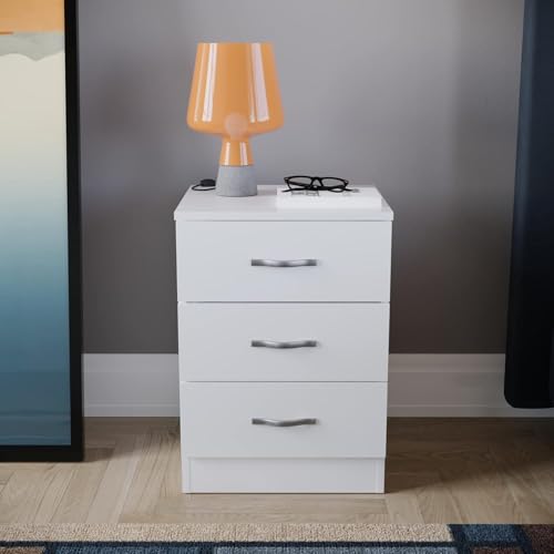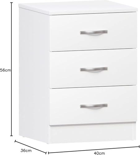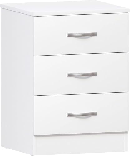 FurniFlex - Chest of 3 Drawers Bedside Cabinet with Metal Handle, Large, White
