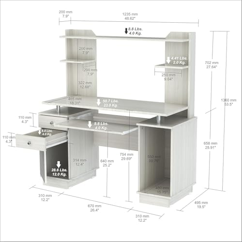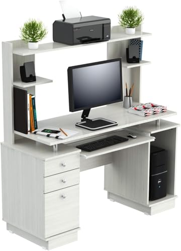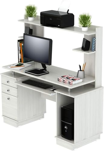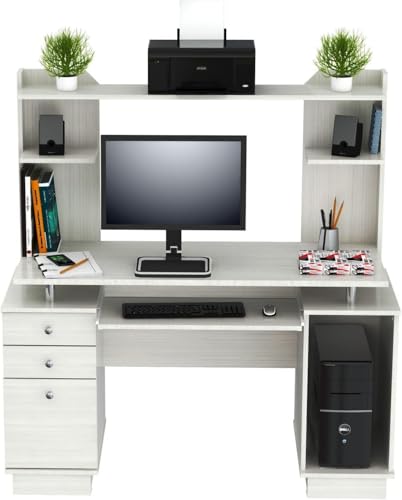FurniFlex - Computer Desk with Hutch, Laricina White