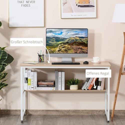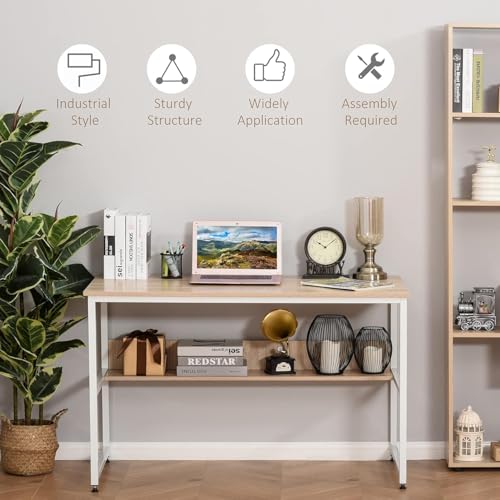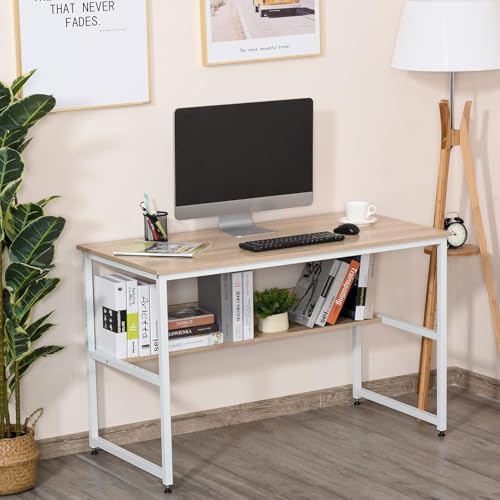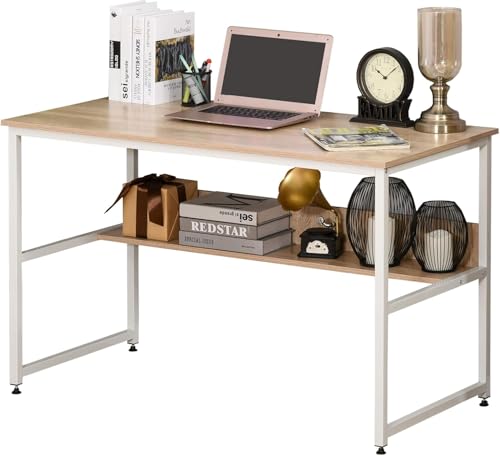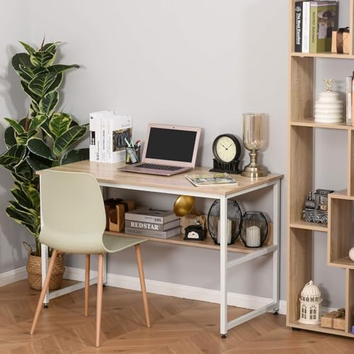 FurniFlex - مكتب كمبيوتر مع رف تخزين وإطار معدني وأقدام قابلة للتعديل من فورني فليكس، لون بلوط