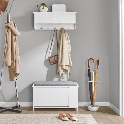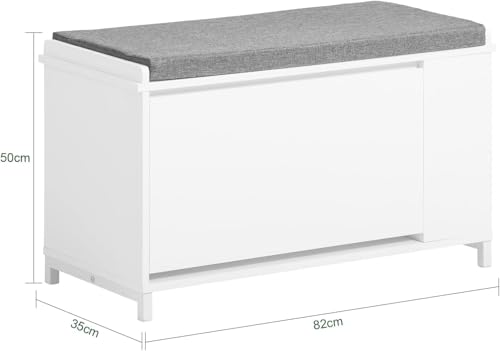 FurniFlex - Flip-Drawer Shoe Bench with Side Shelf and Removable Seat Cushion, White