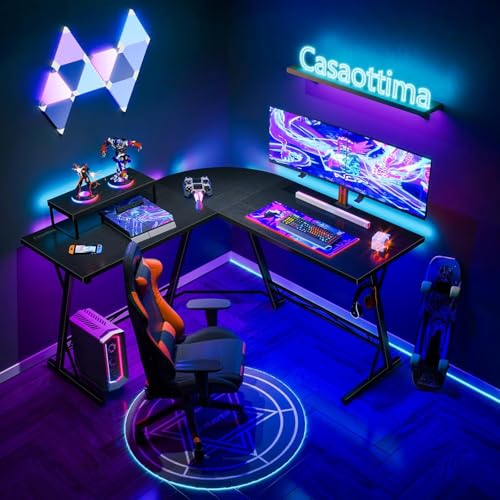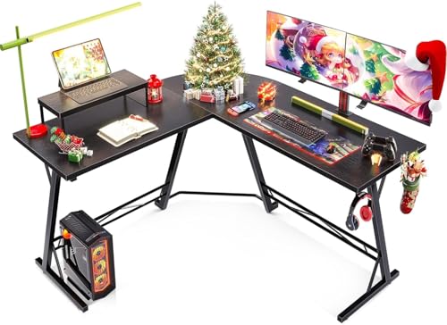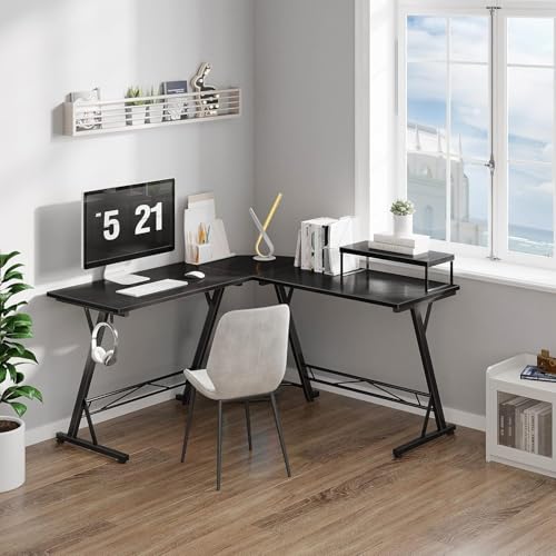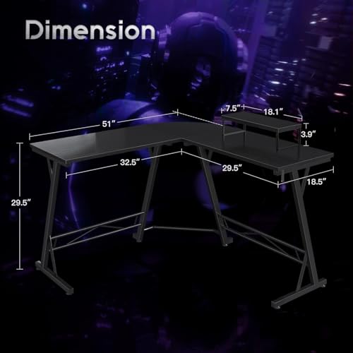 FurniFlex - L-Shaped Computer Desk with Monitor Stand, 51-Inch Size, Black