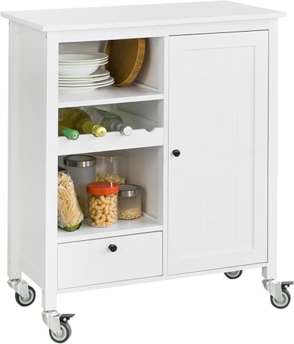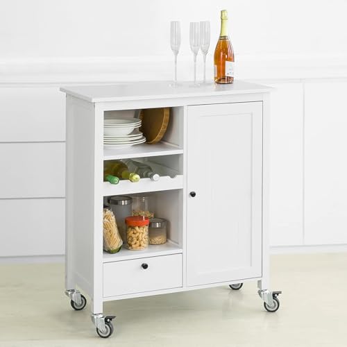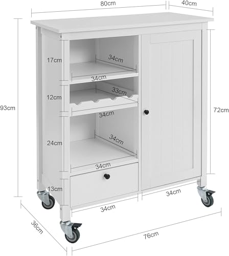 FurniFlex - Rolling Storage Kitchen Trolley with Bottle Holder, 76 cm x 36 cm x 93 cm Size, White