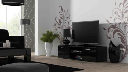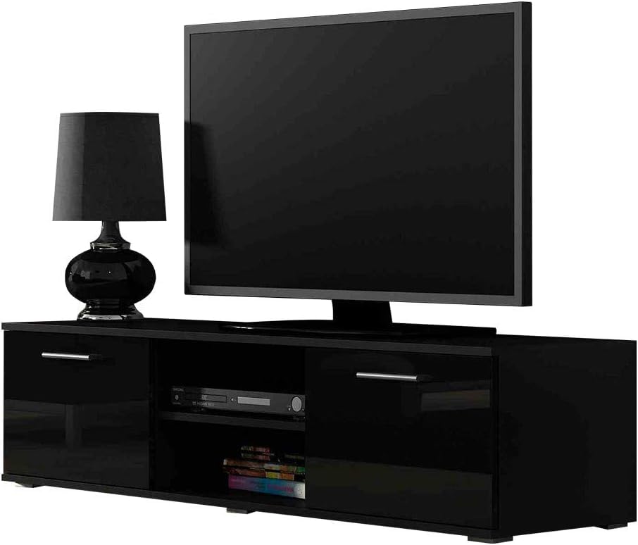 FurniFlex - وحدة حامل تلفزيون سوهو بتصميم عالي اللمعان، خزانة ترفيهية مع بابين من فيرني فلكس، مقاس 140 متر، لون أسود