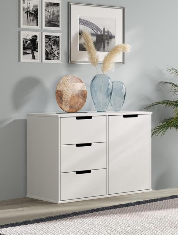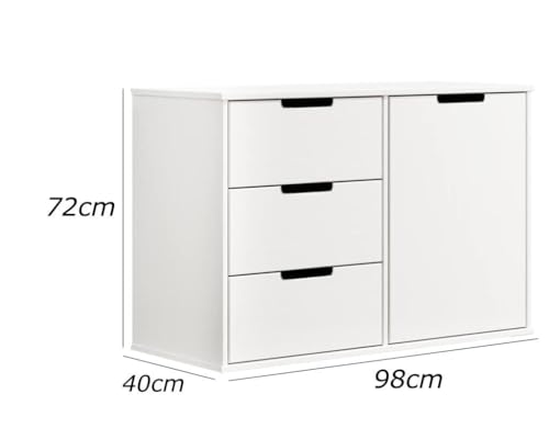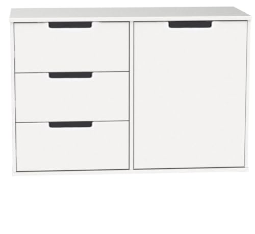 • وحدة ادراج مودرن ام دى اف - ارتفاع 72 سم - عرض 98 سم - عمق 40 سم ، تتكون من 3 ادراج ، مصنوعة من ال MDF عالي الجودة ، سُمك 16مم ، مع طبقة ملامين خارجية من اللون الأبيض المطفي. مع ميكنزم معدن (مجرة الدرج معدن 2 مرحلة) ، فنش عالي الجودة ، من فرنتشر ستور.