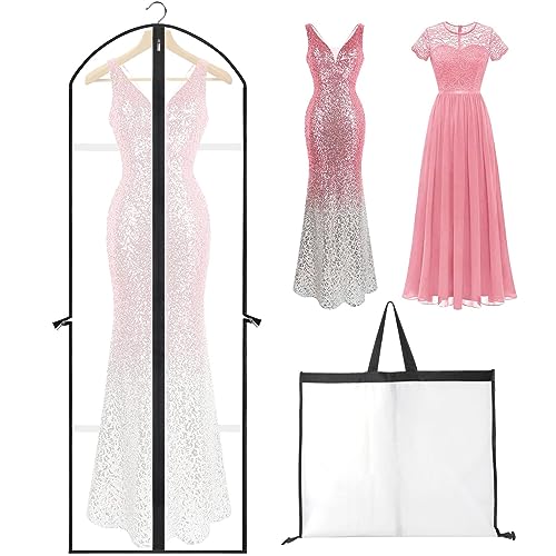 - 👗【Designed For Garments and Long Dresses】Extra long size 180 x 60 cm (180 x 60 cm), Pwsap bridal garment cover bags are specially designed for storing long dresses, prom dresses and bulky gowns so that they can be protected when stored and to make them easier to store. Wear them