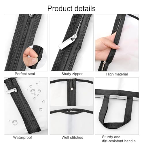 - 👗【High Quality Eco-Friendly Materials】The garment bag is made of breathable 100GSM PVC, stronger and more eco-friendly than non-woven fabric, lasts longer than dry cleaning bags, not easy to tear, and can be washed repeatedly. Dust and water resistant, it can protect your clothes from mildew and pet hair, keeping them fresh and wrinkle-free