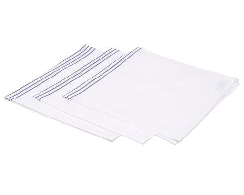 Gazal - Gazal Table Napkins Set 3-Pieces, 55 cm x 55 cm Size, White/Dark Blue