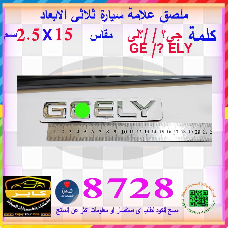Generic - علامة شعار سيارة ثلاثية الأبعاد لاصق (كلمة جي ؟ / ؟ لي ، GE ? / ELY ، مقاس 15 * 2.5 سم ، كود : 8728) - كابر مصر 2020