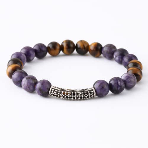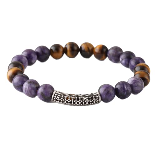 Generic - Gemstone Bracelet Gemstone Jasper Stone Brown Tiger's Eye Stone with Silver Tone