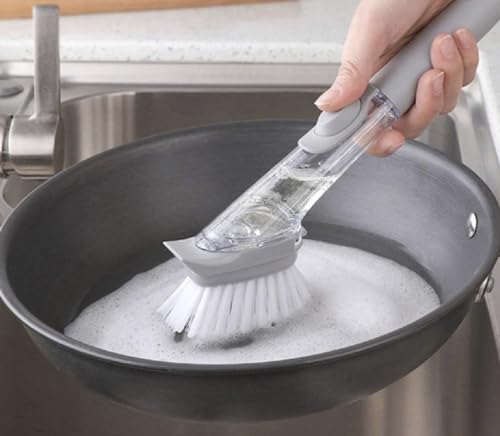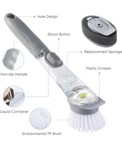Generic - فرشاة تنظيف المطبخ بخزان للسائل 3 × 1 بموزع صابون سائل وفرشاة طاسة ووك إسفنجية
