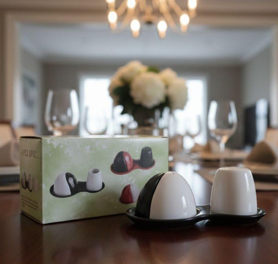 - Complete 4-Piece Set: Includes 2 salt and pepper shakers, 1 toothpick holder, and 1 convenient tray to keep everything organised on your dining table or kitchen counter