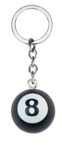 Generic - جيني حلقة مفاتيح كرة سوداء رقم 8 من بلياردو، معدن فضي اللون، موضوع رياضي، حجم صغير، لمسة نهائية متينة