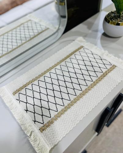Generic - جيني مفارش طاولة بنمط بوهيمي مع شراشيب، كريمي وبني، 45 × 30 سم، ديكور طعام من القطن المنسوج