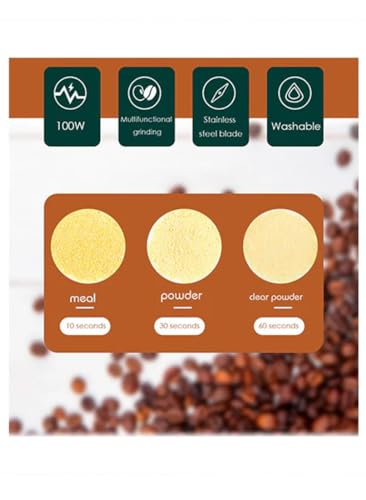 • The stainless steel blade and 150W of power grind coffee beans to coarse in 5 seconds, medium in 10 seconds, and fine in 15 seconds.