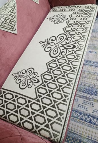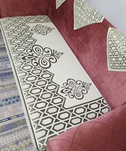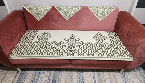 Generic - Generic Corner Sofa Linen Cover Set, Geometric Pattern, 8 Pieces with 2 Large Sofas, 1 Wall-Mounted Sofa 75x200cm, 6 Napkins, (off white) .sr