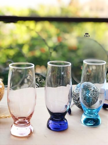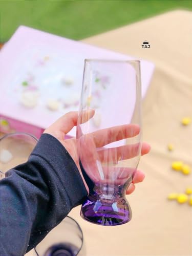 Generic - أكواب شرب زجاج من الكريستال، 370 مل، قاعدة بلون أرجواني من 6 قطع