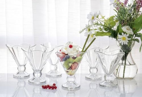 • تصميم أنيق: تتميز أكواب الحلوى المصنوعة من الزجاج الكريستالي بشكل كلاسيكي متوهج مع حواف مزخرفة وقاعدة قاعدة، مثالية لتقديم الآيس كريم والبارفيه والفواكه والموس وغيرها من الحلويات