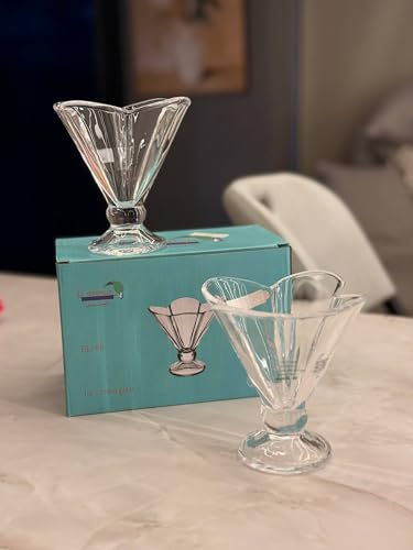 Generic - جيني طقم اكواب حلوى من الزجاج الكريستالي، شفاف، امن للاستخدام في غسالة الصحون، قطعتين