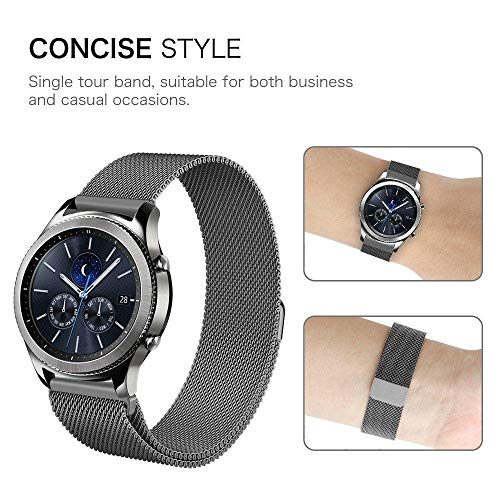 generic - سوار ساعة كلاسيكي بديل قابل للتعديل مصنوع من الستانلس ستيل مقاس 22 ملم ومزود بحلقة ميلانو لساعات جير اس 3 فرونتير - سامسونج كلاسيك - الساعة الذكية للكبار الجنسين