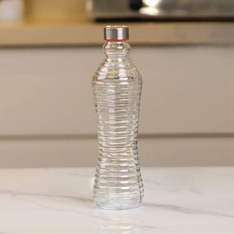 Generic - Generic Glass Water Bottle with Sealed Cap, Ribbed Design, Clear, .sg